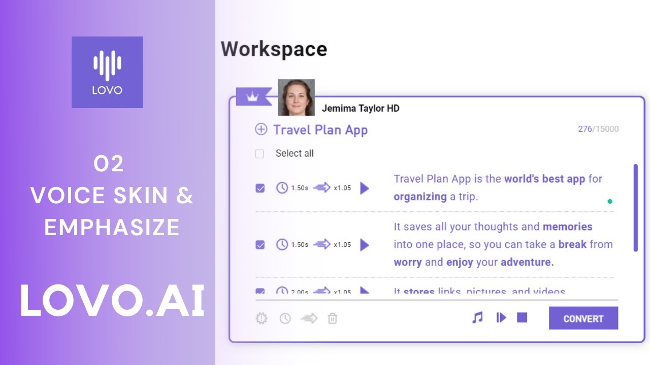 The LOVO text-to-speech software is ideal for creating explainer videos, podcasts, social media content, and e-learning materials. It also has a full-featured interface that makes it easy to use and manage.