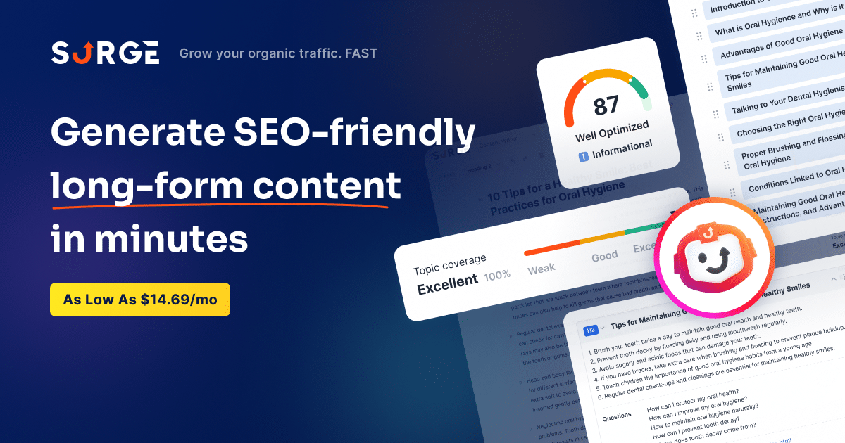 Comprehensive Reports: Surgegraph creates detailed reports. Use them to track progress, find areas to improve, and show results to clients. These reports are clear and actionable. They are a great addition to any SEO toolkit.